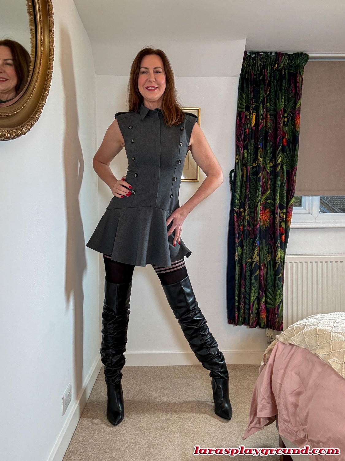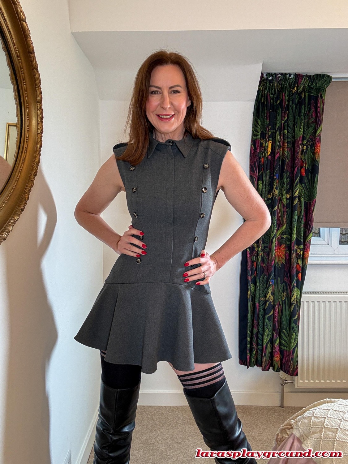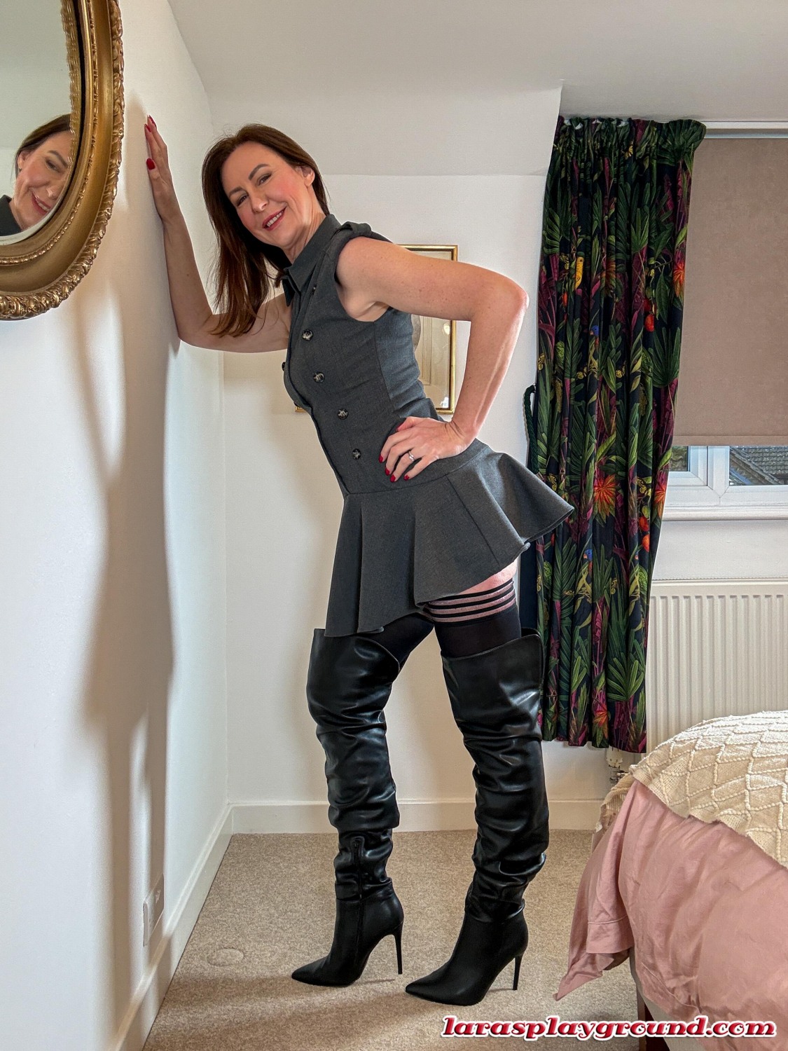 Brunette Milf Lara Teases In Black Thighhigh Leather Boots