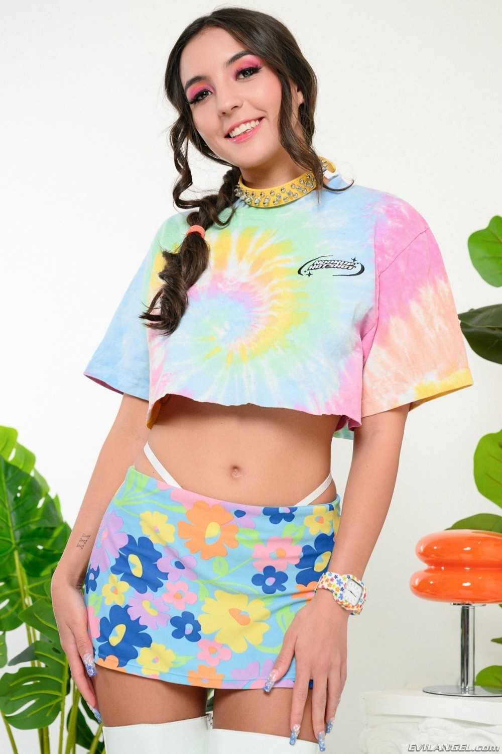 Lovely Brunette Sasha Tatcha Teases In White Thighhigh Boots